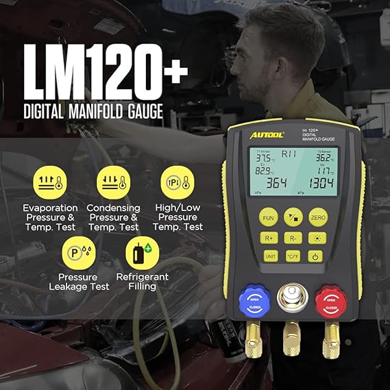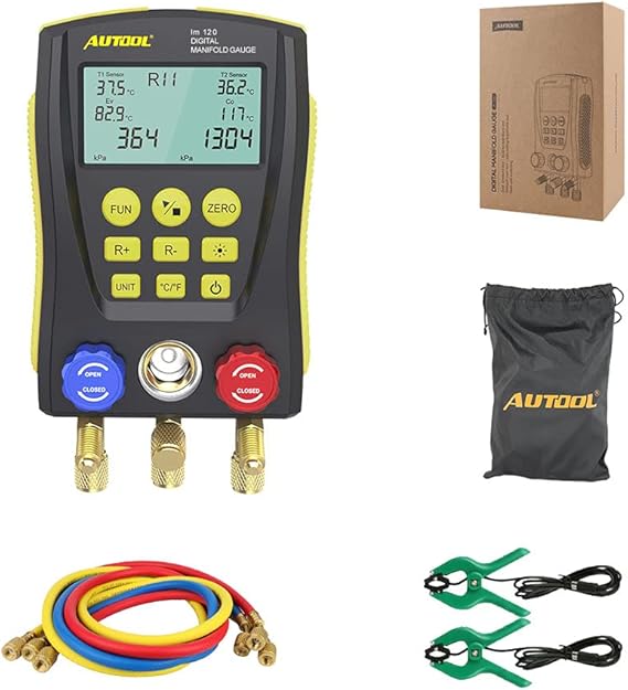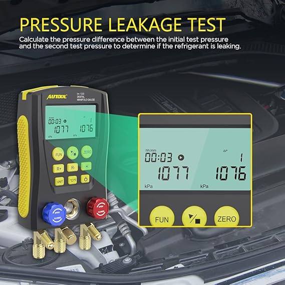 言葉遣い条件圧力テスト、過熱テスト、真空圧力テスト、圧力漏れテスト、デュアルチャネル温度センサー、漏れ速度ヒントを含むAutoolデジタル冷凍ゲージ。これは、エアコン、冷蔵庫、冷蔵などの冷凍装置のテストとメンテナンスに必要なツールです。
