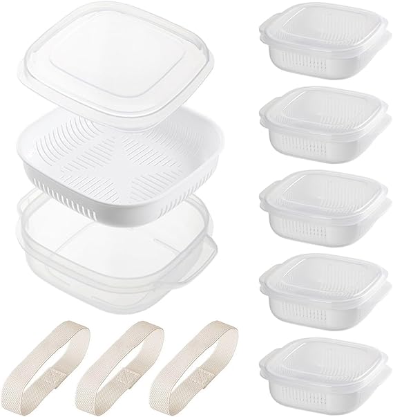 冷凍ごはん容器 冷凍ご飯 保存容器 6個入り 一膳分 ごはん冷凍容器 冷凍ライスコンテナー ご飯小分け容器 水切りザル付き BPAフリー 電子レンジ対応/食洗機対応 ベルト3本付き a