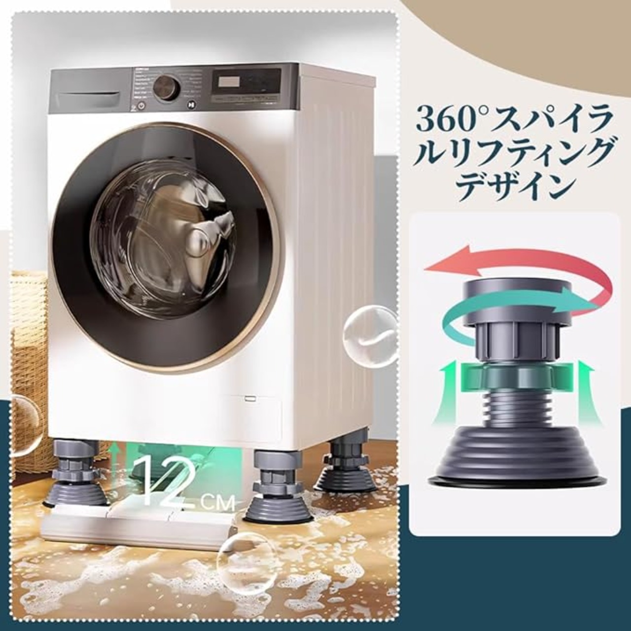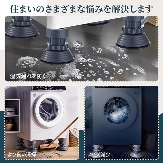 LONGAIXIN 洗濯機用防振かさ上げ台 底上げ 12cm 洗濯機置き台 高さ調整 振動・異音軽減 防振ゴム かさ上げ台 冷蔵庫 机 乾燥機 嵩上げ台 床に傷防止 1セット4個入り a