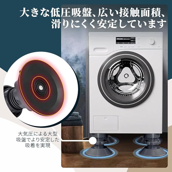 取り付け簡単:洗濯機用防振パッドは取り付けが簡単で使いやすいです。 設置床をきれいに拭き、ほこりがなく、吸盤がより安定していることを確認します。洗濯機のフットパッドを必要な高さに調整し、位置を決めて、洗濯機の支持脚を立てて完了です。インストールは素早くて便利です