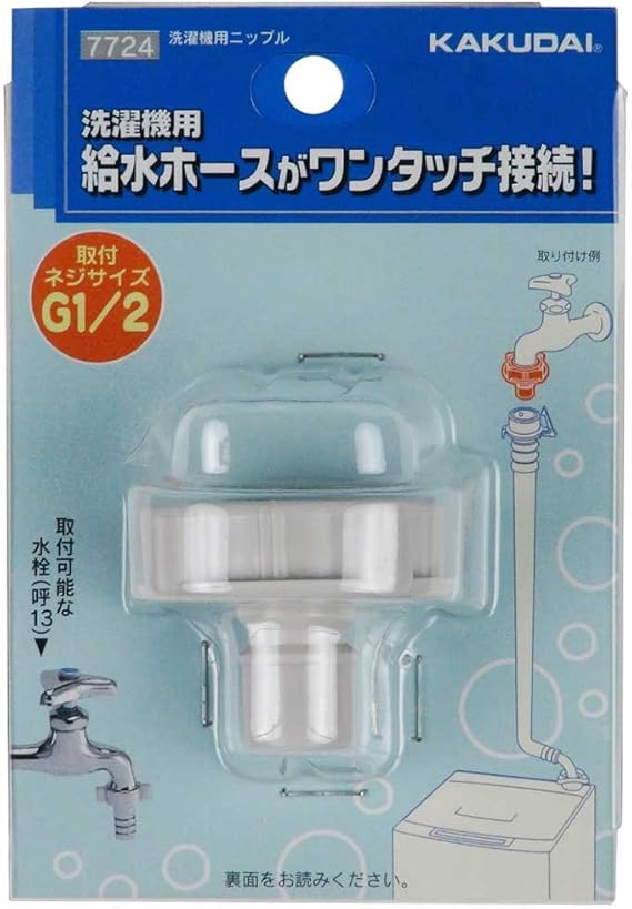 カクダイ 洗濯機用 取替簡単ニップル 呼13カップリング付き横水栓用 給水ホースをワンタッチ接続 樹脂製 7724 a