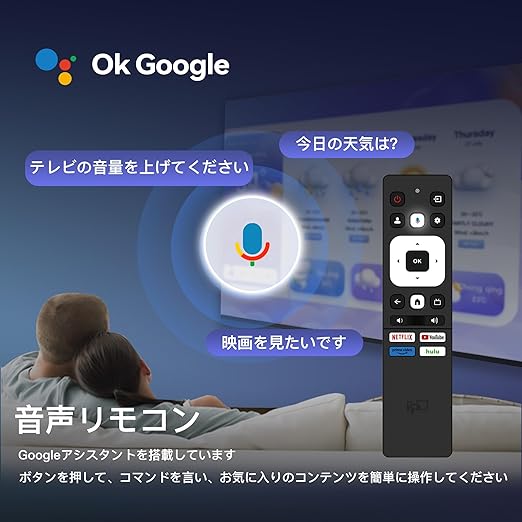 【チューナーレススマートテレビ】NETFLIX、Prime Video、YouTubeなどのプリインストールアプリに加え、Google Playからアプリ、ゲーム、映画、音楽などをダウンロードすることもできます。地上波/BS/CSテレビチューナーは付属しておりません