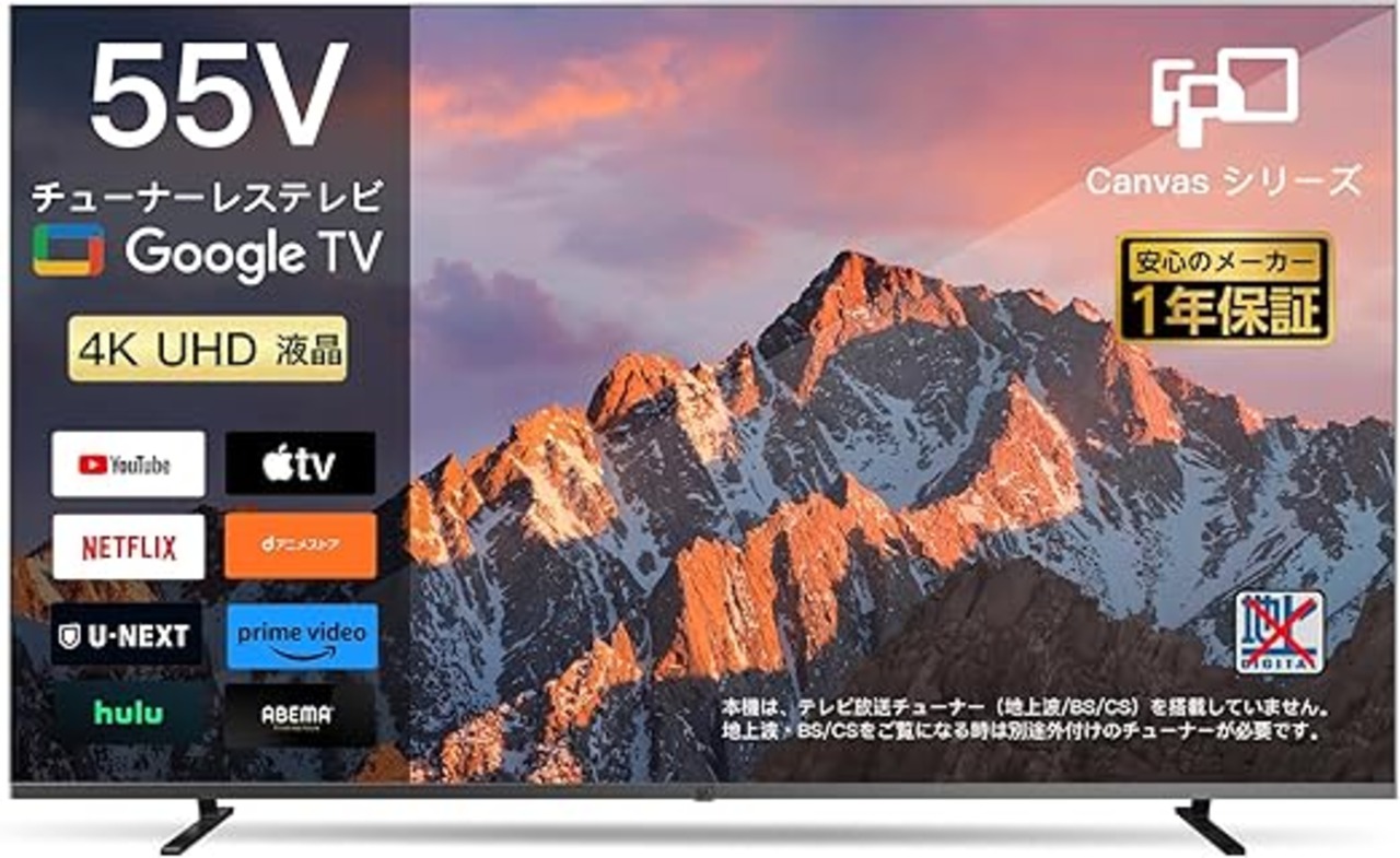FPD チューナーレステレビ 55V型 4K Google TV ネット動画対応 スマートテレビ HDR10対応 Dolby Vision Dolby Atmos MEMCテクノロジー Google Cast内蔵 音声検索 VESA規格(CG55-C2 2024年 モデル) a