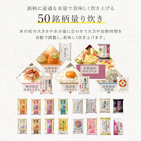 <炊飯器> 炊飯容量(最大):無洗米/白米…0.54L(3合)、炊込み…0.36L(2合)、全がゆ…0.18L(1合)、5ぶがゆ…0.09L(0.5合)、玄米…0.36L(2合) / 区分名 ※1:A / 蒸発水量 ※1:31.1g