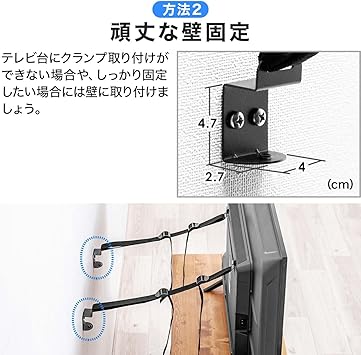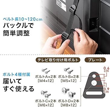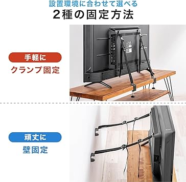 サンワダイレクト テレビ 転倒防止ベルト VESA取付 2本ベルト クランプ式 【粘着/穴開け不要】壁固定対応 100-PL036 a