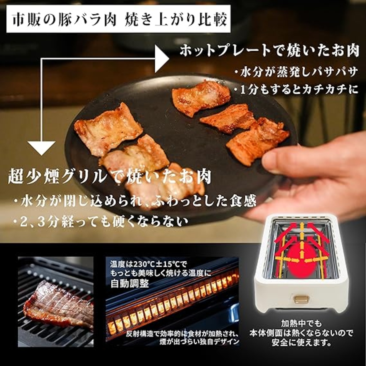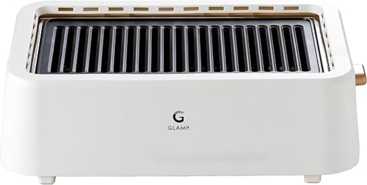 [グランプ] 超少煙グリル 減煙 焼肉グリル 「自慢したくなるほど煙が出にくい」GLAMP. まるで七輪 スモークレス 失敗しにくい温度キープ (約230℃±15℃) 遠赤外線 カーボンヒーター 焦げ付き防止 焼肉プレート 油受け皿付き 焼肉屋クオリティ 焼き魚 BBQ バーベキュー簡単お手入れ 1200W SG-01 (ホワイト) a