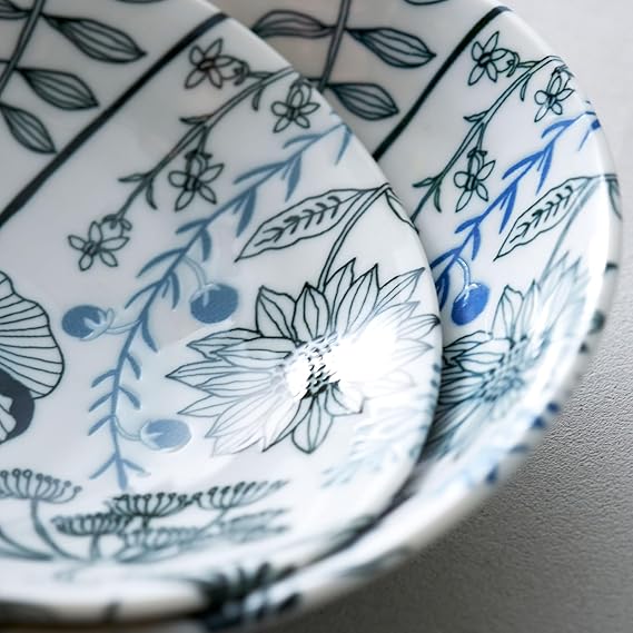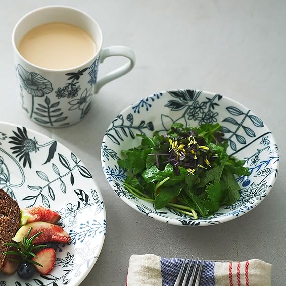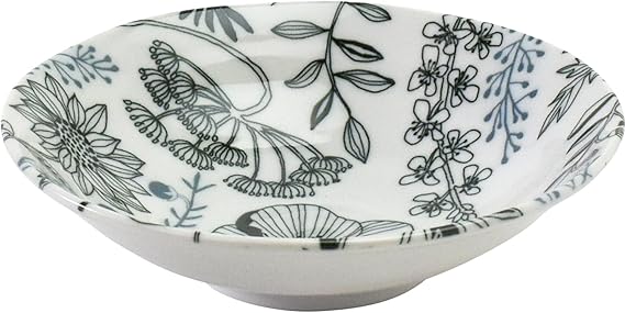 aito製作所 「 フラワーパターン 」 軽量 食器 サラダボウル シリアルボウル 皿 M 直径約16×深さ4cm 美濃焼 食洗機対応 電子レンジ対応 花柄 白 モノ ブラック 日本製 111179 a