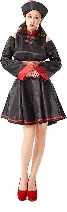 [JUNDOMECY] ハロウィン 仮装 ゾンビ キョンシー 大人 レディース 女性用 衣装 怖い コスプレ 中国ゾンビ ホラー コスチューム 演出服 イベント用品 変装パーティー 文化祭 a