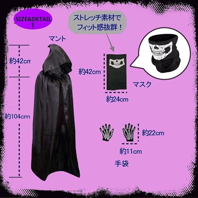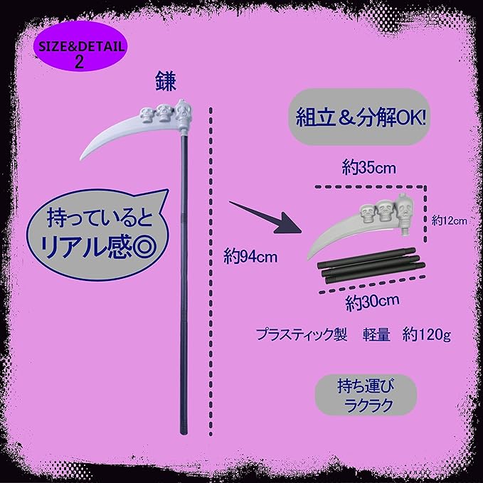 [APOSITV] 死神 コスプレ メンズ 衣装 マント 男 悪魔 ハロウィン コスチューム 4点セット 鎌 仮装 a