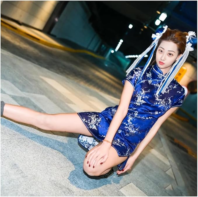 [Limspace] チャイナドレス ミニ チャイナ服 レディース サテン ワンピース 半袖 膝上 梅花柄 龍と鳳凰柄 ファッション エレガント 旗袍 ダンス 舞台衣装 パーティードレス 結婚式 ハロウィン コスプレ衣装 d