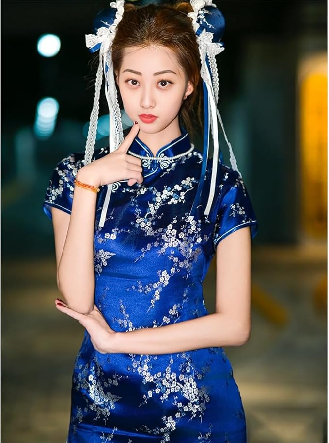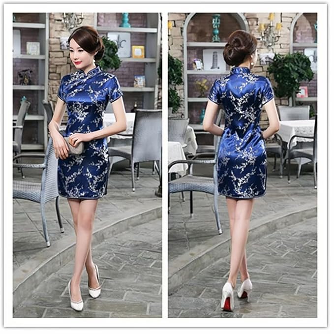 [Limspace] チャイナドレス ミニ チャイナ服 レディース サテン ワンピース 半袖 膝上 梅花柄 龍と鳳凰柄 ファッション エレガント 旗袍 ダンス 舞台衣装 パーティードレス 結婚式 ハロウィン コスプレ衣装