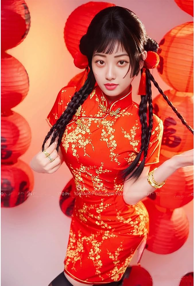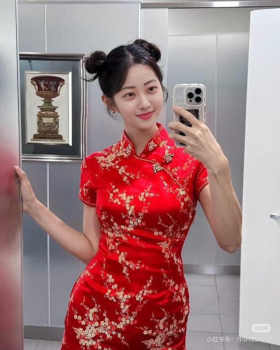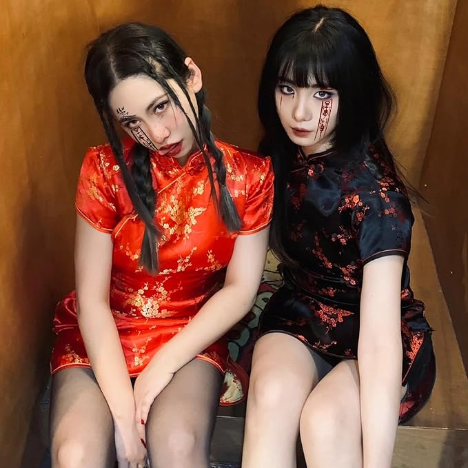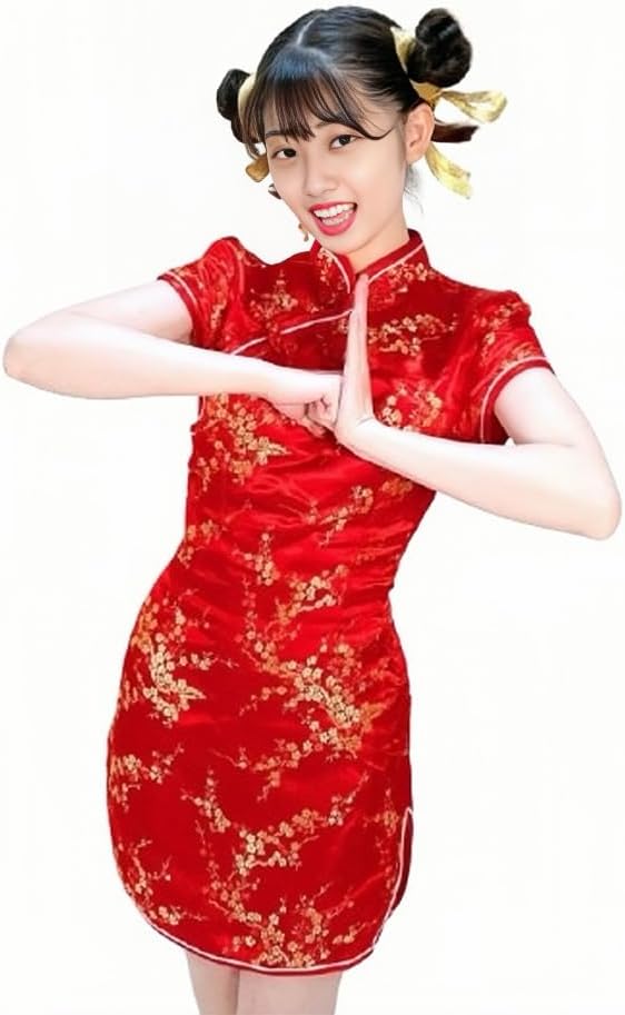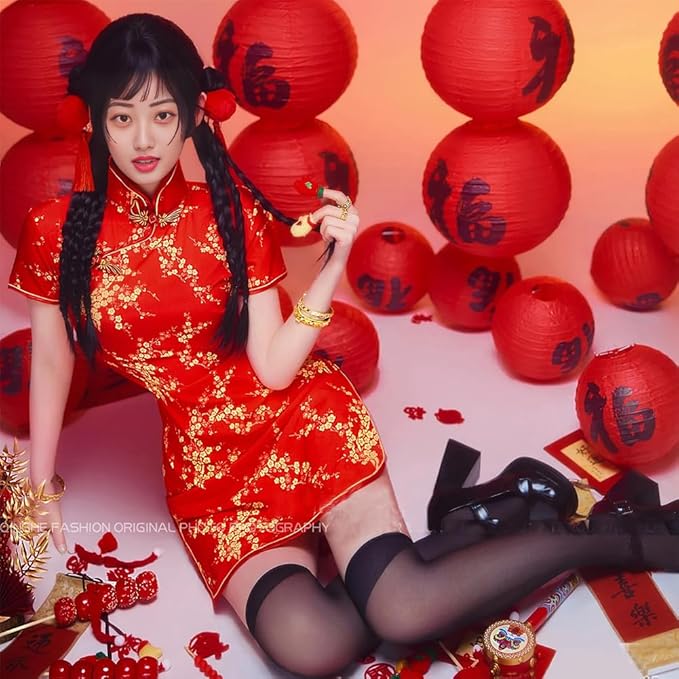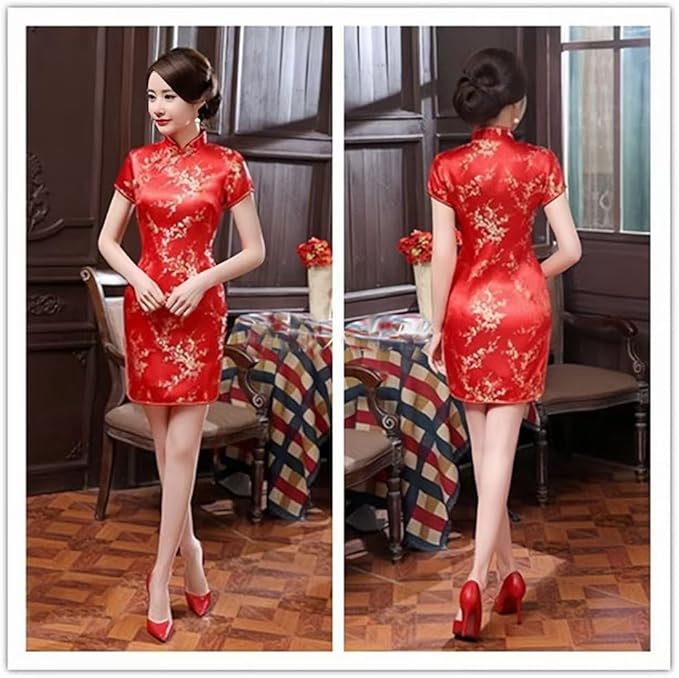 [Limspace] チャイナドレス ミニ チャイナ服 レディース サテン ワンピース 半袖 膝上 梅花柄 龍と鳳凰柄 ファッション エレガント 旗袍 ダンス 舞台衣装 パーティードレス 結婚式 ハロウィン コスプレ衣装