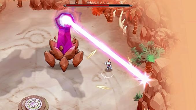 ランダムで変わるダンジョンや能力の強化内容を状況に応じて判断し、各ステージの最奥に待つ巨人の息もつかせぬ猛攻を、一瞬の閃きや己の操作で掻い潜って打ち勝ったときの唯一無二な爽快感、達成感を体感しよう!