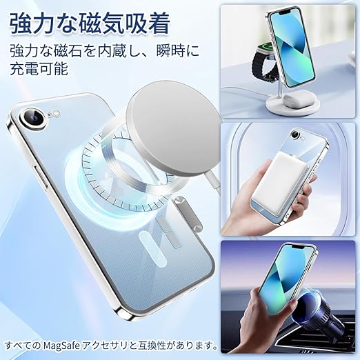 iPhone 16e ケース MagSafe対応 クリア メッキ加工 アイフォン 16e スマホケース 耐衝撃 TPU ワイヤレス充電対応 いpほね 16e カバー ストラップホール付き 薄型 透明 超軽量 黄ばみにくい 柔軟 滑り止め (シルバー) a
