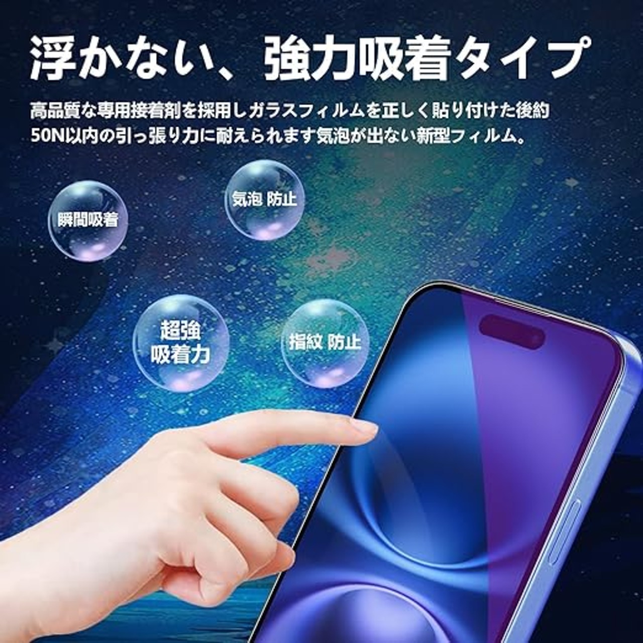 【ブルーライト防止機能で目の疲れを軽減】iphone 16は強化ガラスコアにブルーライトカット反射技術を加え、長時間スマホの画面やゲームを楽しむ人のために設計されています。先進的なブルーライトカット反射技術を採用した保護膜により、目へのダメージを軽減!