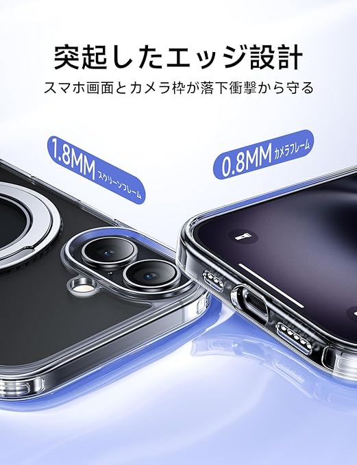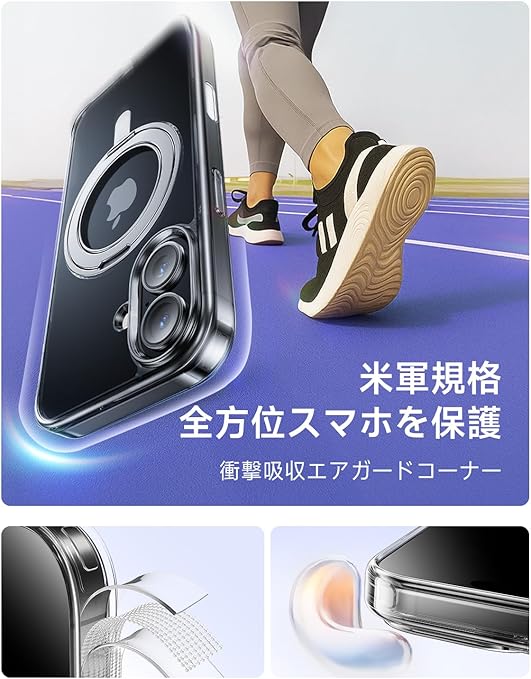 MAGIC JOHN iPhone 16 用 ケース ハード クリア 高透過率 耐黄変 カメラコントロールに対応 スタンド付き 360°回転 MagSafe対応 a