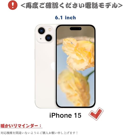 【対応機種】2023年新発売のiPhone 15 6.1 "にのみ対応しており、対応機種と画面サイズをよくご確認のうえ、ご購入いただけますようお願い致します。機種によって各種ボタンの穴が開いており、ジャケットを着脱せずに、充電コネクターの接続、タッチパネル操作が可能です。専用カメラ穴が開いており、本製品を装着したまま、カメラでの撮影が可能です。