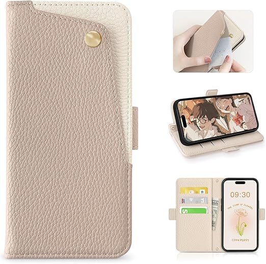 CASSYOOK いphone15 ケース 手帳型 iphone15 ケース 財布型 カバー カードポケット付き スマホケース iphone 15 全面保護 あいふおん15ケース カード収納 横置きスタンド機能 高級PUレザー おしゃれ 上質な手触り 擦り傷防止(アプリコット) a
