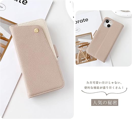 【対応機種】iPhone 15 手帳型ケース(6.1インチ)、対応機種と画面サイズをよくご確認のうえ、ご購入いただけますようお願い致します。専用カメラ穴が開いており、本製品を装着したまま、カメラでの撮影が可能です。