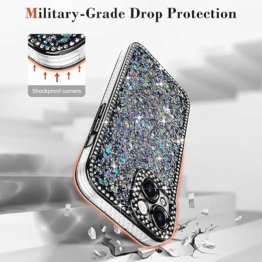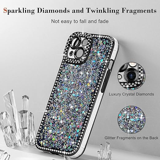 Lafunda iPhone 15 用 ケース キラキラ ラメ ダイヤモンドストーン デコ 女の子 豪華 人気 衝撃吸収 TPU 軽量 落下防止 おしゃれ ワイヤレス充電対応 アイホン15 用携帯ケース 6.1インチ対応 ブラック a