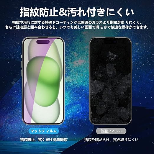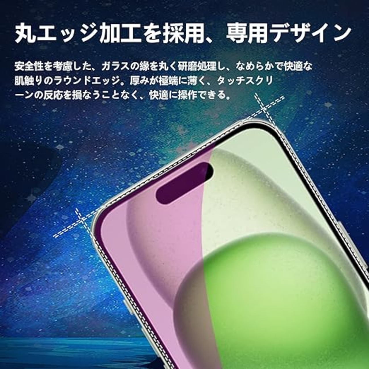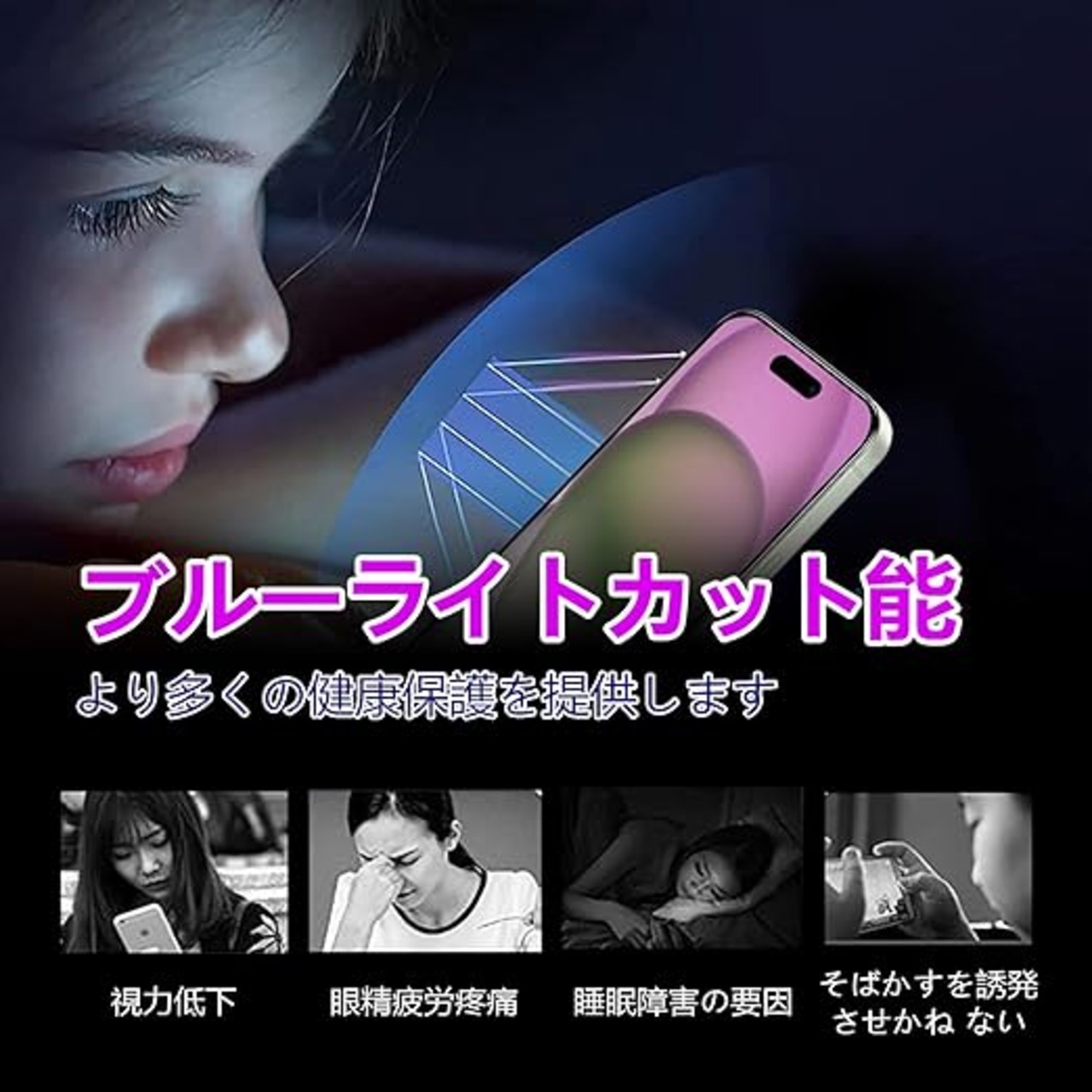 YOODITA 用のiphone 15 ガラスフィルム ブルーライトカット アイフォン15 保護フィルム ブルーライト 15 強化ガラス あいふおん15 フィルム 画面 液晶保護 シート【指紋防止 気泡ない 目の疲れ軽減】【2枚】 a