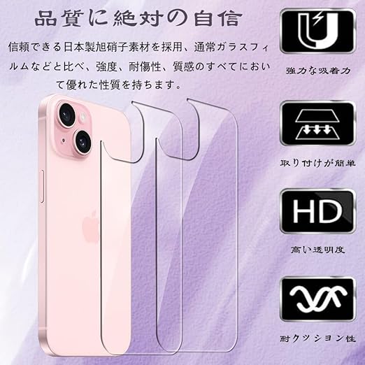 【対応機種】対応機種:iPhone 15 専用 背面ガラスフィルム です。セット内容:2枚セット 用 アイフォン 15背面強化ガラスフィルム。必ずご購入前に携帯電話の機種をご確認ください。