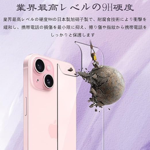 対応 iPhone 15 背面フィルム iPhone 15 ガラスフィルム 【日本製素材旭硝子製】アイフォン15 背面保護フィルム iphone15強化フィルム 高硬度9H 指紋防止 さらさら 気泡防止 飛散防止 撥油性 耐衝撃 高 透過率【2枚セット】 a
