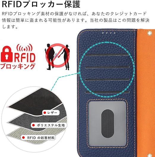 DEYHU 対応 いphone15pro ケース 手帳型 カード収納 スタンド機能 iphone15pro ケース 本革 大容量 財布型 耐衝撃 iphone 15 pro ケース 手帳型 iphone15プロ レザー カバー ブルー と オレンジ a