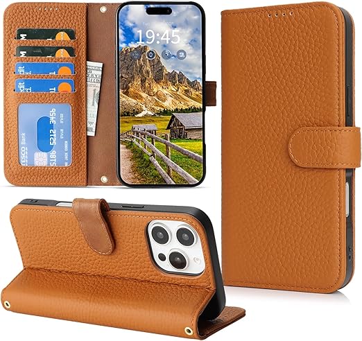 DEYHU 対応 いphone15pro ケース 手帳型 カード収納 スタンド機能 iphone15pro ケース 本革 大容量 財布型 耐衝撃 iphone 15 pro ケース 手帳型 iphone15プロ レザー カバー アースイエロー a