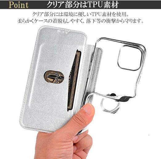ブトフルケ iPhone 14 Pro Max ケース 6.7インチ リング クリア 手帳型 2022年新型番 iPhone 14 Pro Max ケース リング付き 透明 手帳型 Qiワイヤレス充電対応 アイフォン14 プロー マックス カバーケース スタンド機能付き カード収納可 極薄 軽量 耐衝撃 耐摩擦 落下防止 男女通用 可愛い 人気 ファション おしゃれ プレゼント お祝い 【対応機種iPhone 14 Pro Max シルバー】 a