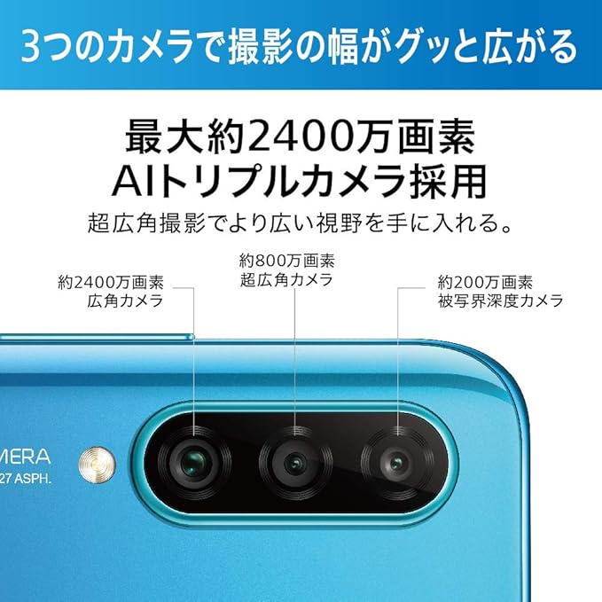 ディスプレイ:約6.15インチ FHD+ (2312×1080ピクセル) TFT しずく型ノッチ
