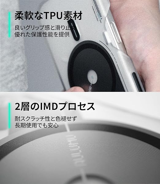 【耐久性のあるIMD加工】2層のIMDプロセスを採用し、耐スクラッチ性と色褪せ防止を実現。半透明のTPUカバーは、滑らかな手触りで長く鮮明さを保ちます。