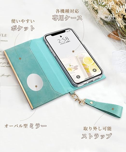 OCTERR iPhone 7 iPhone 8 iPhone SE 2(第二世代)ケース 手帳型 iPhone SE3 (第三世代)用スマホケース手帳型 アイフォン7カバー アイフォン8カバー アイフォンSEカバー 鏡付き マグネット式 スマホケース 財布型 手帳 カードポケット スタンド機能 携帯ケース ダイアリーケース PUレザー 女性 耐衝撃 全面保護 ファッション おしゃれ 美しい グリーン a