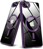 iPhone SE 第3世代 用ケース iPhone SE 用ケース 第2世代 iPhone8 用ケース / iPhone7 用ケース クリア 耐衝撃 薄型 メッキ加工 マグネット搭載 TPUケース ソフトバンパー 透明 落下防止 耐衝撃 ワイヤレス充電 擦り傷防止 指紋防止 ストラップホール付き アイフォン7/8用ケースカバー 軽量 人気 一体型 保護カバー ダークパープル J42 a