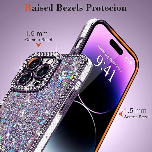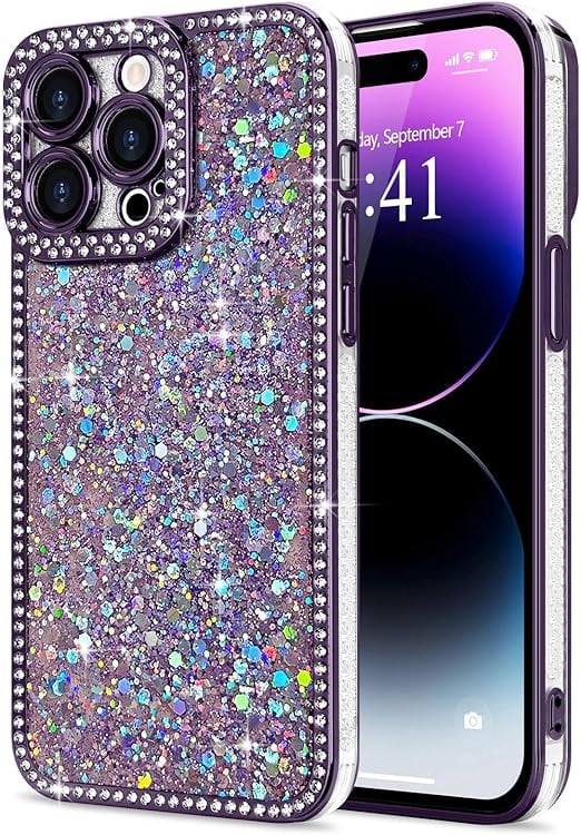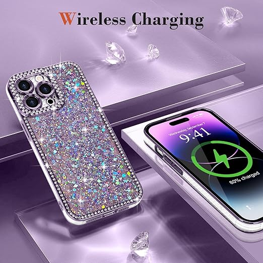 Lafunda iPhone 14 Pro Max 用 ケース キラキラ ラメ ダイヤモンドストーン デコ 女の子 豪華 人気 衝撃吸収 TPU 軽量 落下防止 おしゃれ ワイヤレス充電対応 アイホン14 Pro Max 用携帯ケース 6.7インチ対応 パープル a