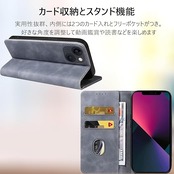 KWATUNG iPhone 13 手帳型ケース iPhone 13 ケース 手帳型 おしゃれ 肌感レザー iPhone13 ケース 内蔵マグネット耐衝撃 iphone 13 スマホケース カード収納 スタンド機能 全面保護【6.1インチ】グレー a