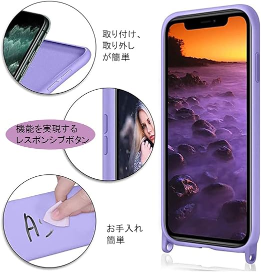 UnnFiko For iPhone SE 第2世代 ケース ネックストラップ For iPhone SE 3/2 スマホケース 適用 iPhone 7 カバー 蛍光色 シリコン アイフォン 8 ケース シンプル ソフト 保護カバー 携帯ストラップ 紐付き 斜めがけ (iPhone 7 / 8 / SE 2/ SE 3, Purple) a
