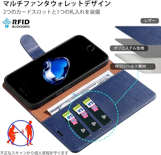 【全方位のスマートフォン保護】アウターケースは高品質な合成皮革(PU)製で、耐熱性、耐衝撃性に優れ、手触りがよく、ホコリや汚れを寄せ付けません。 ケースの