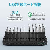 Unitek 2022 QC3.0*2 USB充電ステーション 10ポート QC3.0卓上充電スタンド 96W PSE認証済 10台同時充電 1.5A/2.4A スマートIC搭載 複数台対応 Android/iPhone/iPad/kindle/タブレット/PSP 仕切り板 間隔調整可能 収納便利 卓上 ブラック a
