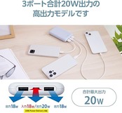 USB Power Delivery 20W出力に対応し、対応機器を超高速充電できる、10000mAhモバイルバッテリーです。