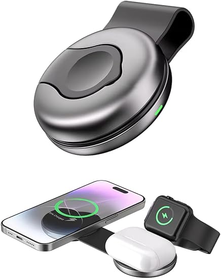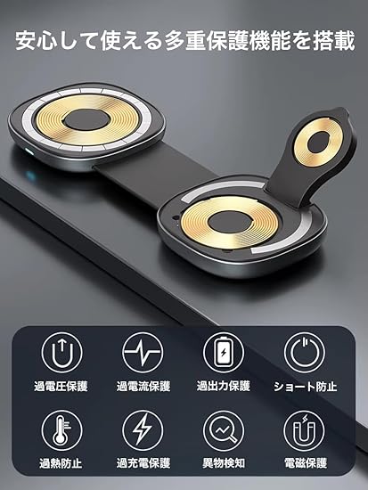 [fluche] MagSafe充電器 ワイヤレス充電器 ポータブル MagSafe対応 3in1 折りたたみ式 15W 急速 アップルウォッチ 充電スタンド 置くだけ 2台同時 iPhone 16/15/14/13/12 Apple Watch Ultra/10/9/8/7 AirPods コンパクト 持ち運び Type-Cケーブル MagSafe (ラウンドタイプ) a