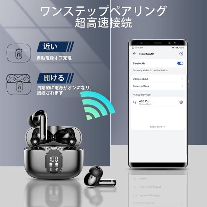 イヤホン bluetooth ワイヤレスイヤホン【2025最新ブルートゥースイヤホン】Bluetooth5.4 ENC通話ノイズキャンセリング 接続瞬時 タッチ操作 HiFi音質 iphone イヤフォン 自動ペアリング 最大40時間再生 超快適設計 LEDディスプレイ Type-C 急速充電 IPX7防水 小型/軽量 Android/Pad適用 スポーツ/WEB会議/通勤/通学 (ブラック) a