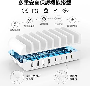 ANNIBER USB充電ステーション 8ポート iphone16 卓上充電スタンド PSE認証済 合計65W 卓上収納 8台同時スマホ/タブレット対応 a