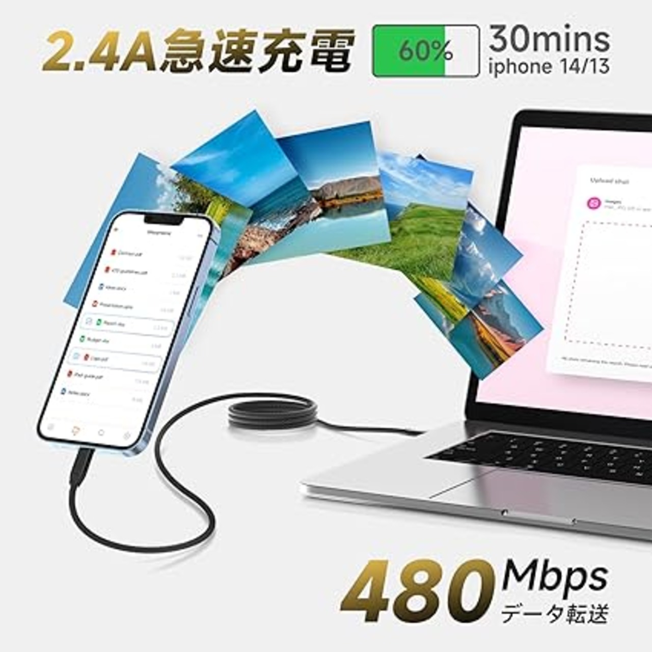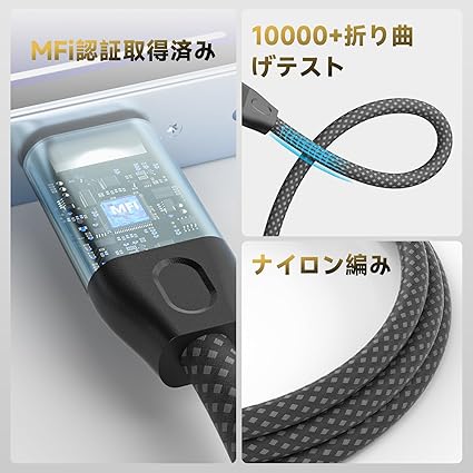 【最大2.4Aの急速充電】iOS機種に完全対応し、デバイスを素早く充電できます。高品質な素材を使用し、優れた耐久性を持ち、長期間使用しても摩耗や損傷が少なく、安定した充電が可能です。また、過熱や電流の不安定を防ぎ、デバイスを安全に保護します。さらに、