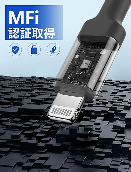 【Apple MFi 認証 C94】 Appleによる認可を受けたケーブルで、iPhoneやiPad、iPod、AirPods、その他のLightning端子機器に対して最適に動作するよう設計されています。