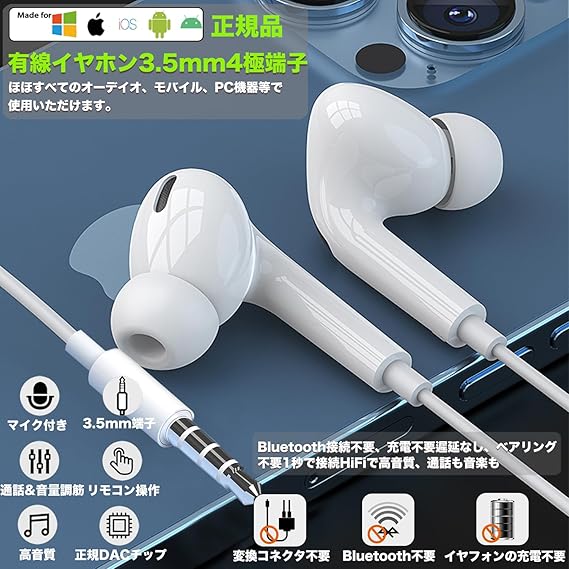イヤホン 有線 3.5mmジャック 有線イヤホン カナル型 HIFI音質 音量調整 重低音 ノイズキャンセリング マイク付き 通話可能 ハイレゾ クリア通話 音量調節 earphones 快適な装着感 人間工学 ステレオイヤフォン ヘッドホン (ホワイト 3.5mm) a