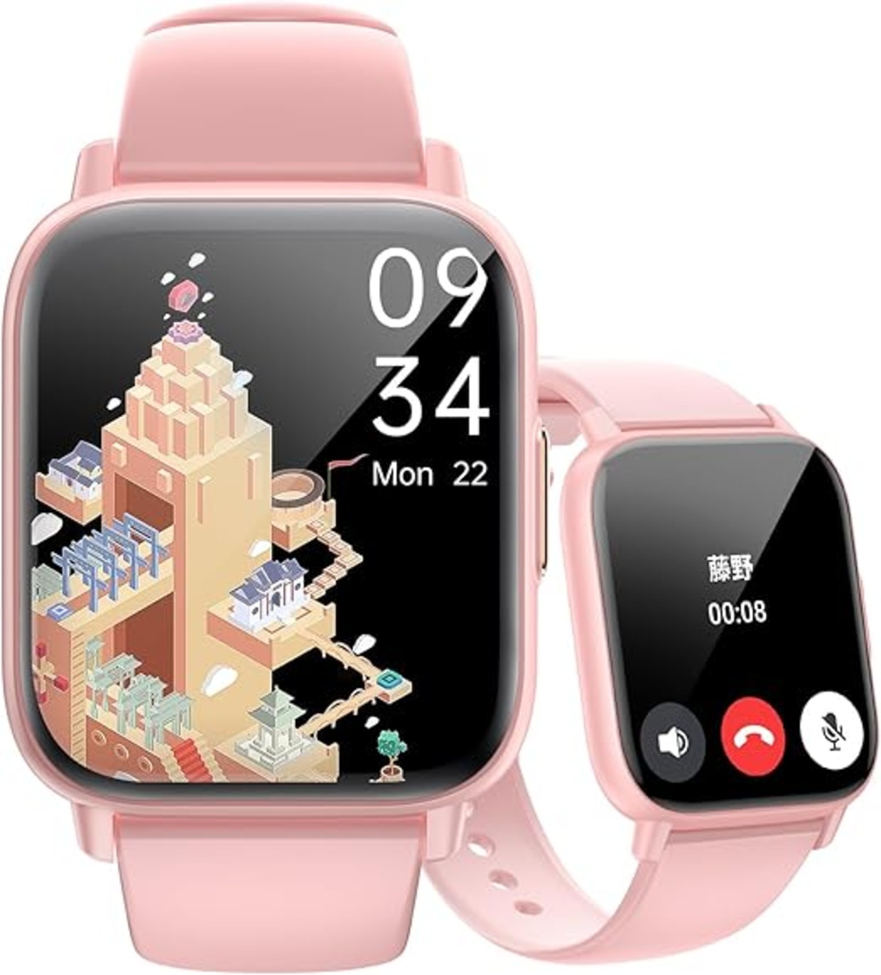 スマートウォッチ レディース 薄型【2024年新登場】通話機能 1.83インチ大画面 iphone対応 アンドロイド対応 スポーツウォッチ LINE着信通知 smart watch IP67防水 防塵 耐衝撃 スマート ウォッチ 活動量計 100+種類運動モード 腕時計 音声アシスタント 日本語取扱説明書付き プレゼント ギフト(ピンク) a