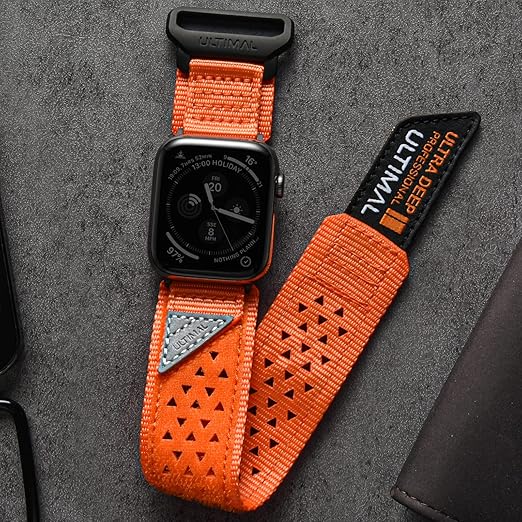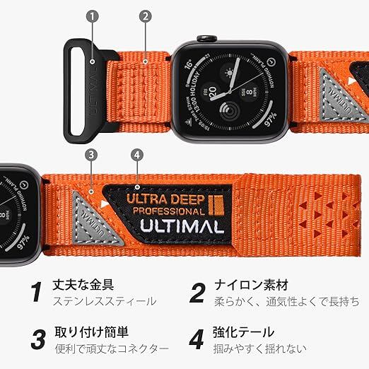 ULTIMAL コンパチブル Apple Watch バンド アップルウォッチバンド44/45/46mm ナイロン 中空 通気性 交換ストラップ スポーツバンド マジックテープ メンズ レディース iWatch 9/8/7/6/5/4/3/2/1/SE/SE2対応 (透かし彫り-44/45/46mm-L(手首周り17-22.6cm対応), オレンジ) a