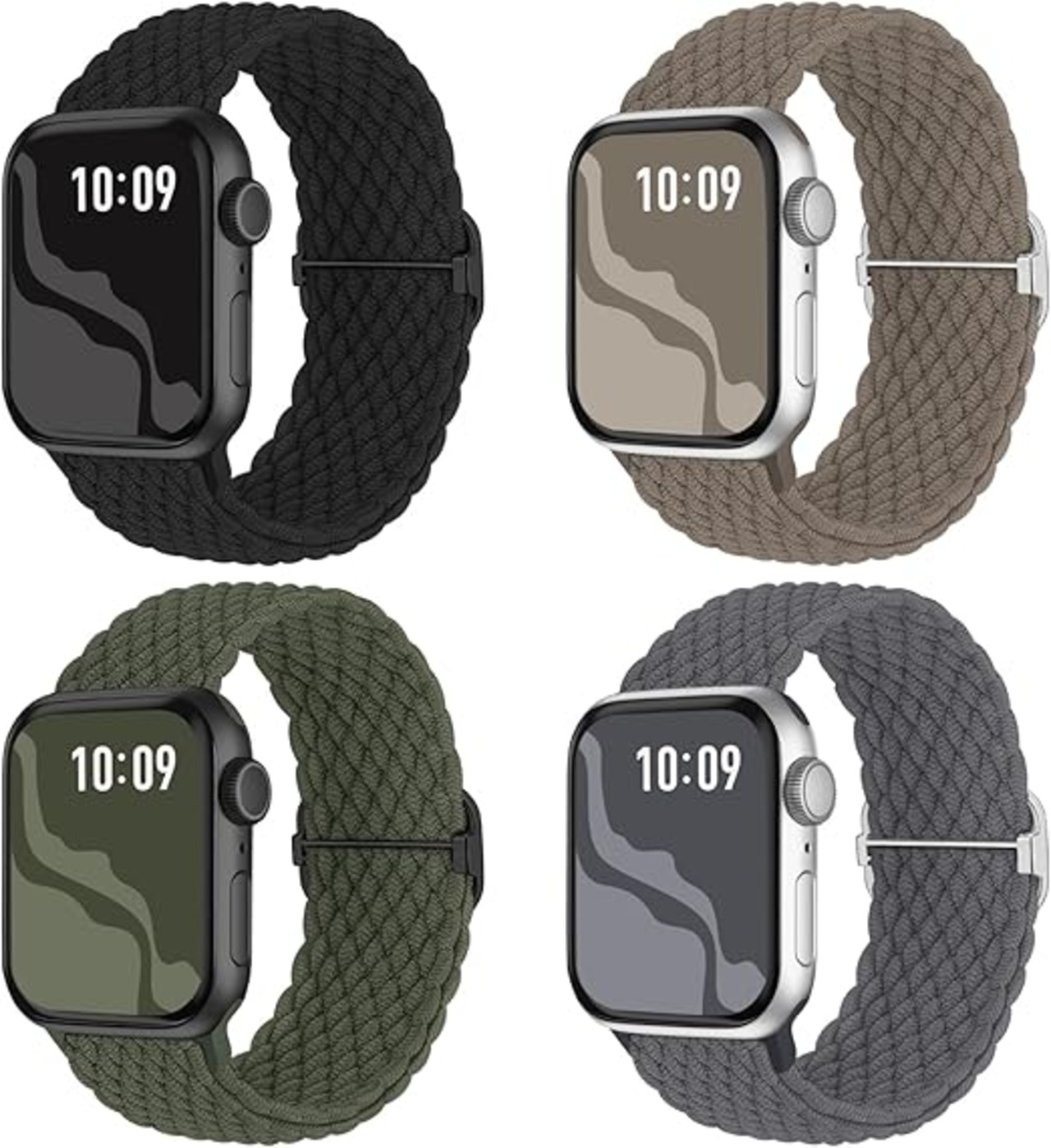 【4枚入り】Suitisbest コンパチブル アップルウォッチ バンド 編み込み 49mm 46mm 45mm 44mm 42mm 41mm 40mm 38mm Apple Watch ナイロンバンド 伸縮性 ゴム アップルウォッチ スポーツベルト Ultra 2 1 Series 10 9 8 7 6 5 4 3 2 1 SEに対応 長さ無段階調整 柔軟 通気 防汗 b
