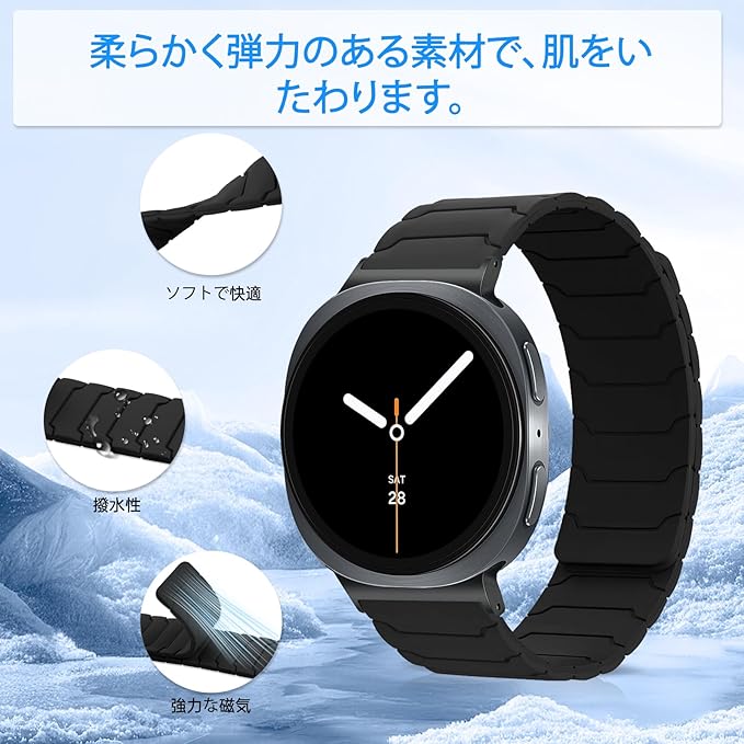 CiimWaa バンド for Samsung Galaxy Watch 8 40mm 44mm/Galaxy 8 Classic 46mm 2025 用 シリコン 時計バンド 強力な磁気 スマートウォッチ交換 マグネット 無段階調整 時計ベルト 超薄型 男女兼用 快適性 交換ベルト Galaxy Watch8 Classic 用 a